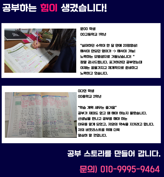 청주 가경동 복대동 수학학원 영어학원 영수학원 고등중등초등 학생 중학생 단과학원 노력으로. (0) 2021.10.01 기말고사 대비 - 계획 및 준비 내신 국어편 (0) 2021.09.30 공부 잘하는 방법, 수업 시간 활용하기 - 수학편 (0) 2021.09.28 세종시 새롬동 수학학원 영어학원 고등중등초등 중학생 영수학원 제대로! (0) 2021.09.28 중간고사 대비 - 학습전략 수학편 (0) 2021.09.27