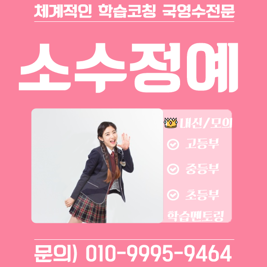 확실한 영어 내신 시험 계획세우기. (0) 2021.10.05 인천 삼산동 부평 수학학원 영어학원 초등중등고등 학생 중학생 영수학원 확실하게. (0) 2021.10.04 영어 공부의 성공은 지속성, 꾸준히 해야 하는 것은? (0) 2021.10.04 판교 분당 수학과외 영어과외 고등중등초등 학생 영수학원 중학생 희망적으로. (0) 2021.10.01 내신은 교과서로, 3단계 문제 풀이방법. (0) 2021.10.01